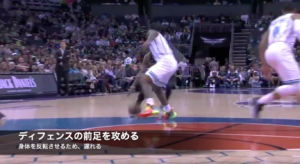 基本的には右か左かのどちらかのサイドを攻め、重心が偏った瞬間やスタンスが縦足になった瞬間にディフェンスの前足を攻めます。そうすることでディフェンスは反転して対応しなければならず、反応が遅れます。