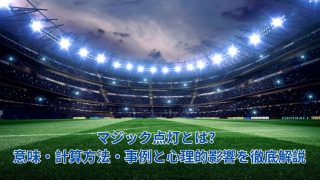 2025 マジック点灯とは マジック点灯とは、プロ野球などリーグ戦形式の大会において、特定チームが優勝するために必要な残り勝利数を示す優勝マジックナンバーが初めて算出され、表示されることを指します。簡単に言えば、これだけ勝てば優勝が決まるという数字が見える状態になるこ... 2025.08.21 2025